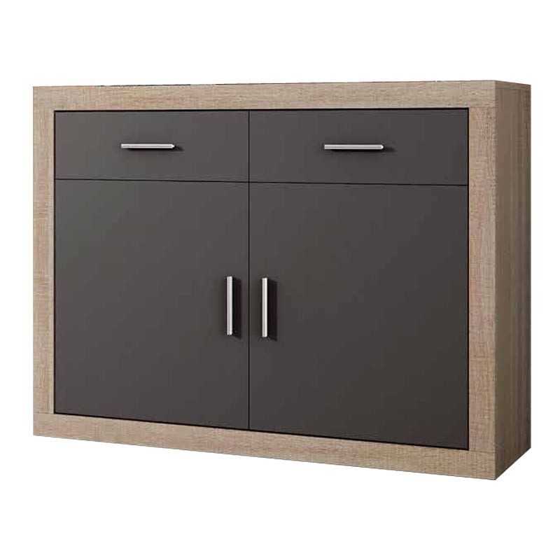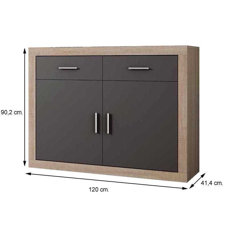Con un moderno diseño enmarcado el aparador Lara dispone de dos cajones y dos puertas. Moderno acabado en cambrian combinado con grafito.
