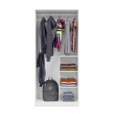 Se caracteriza por su gran capacidad de almacenaje, ya que dispone de 1 barra de colgar de aluminio extraíble y 3 estantes en la parte inferior del armario.