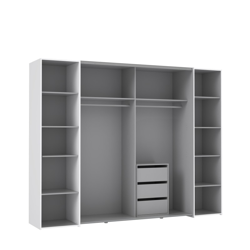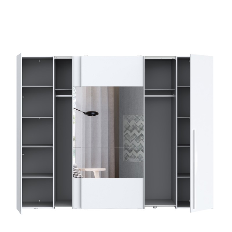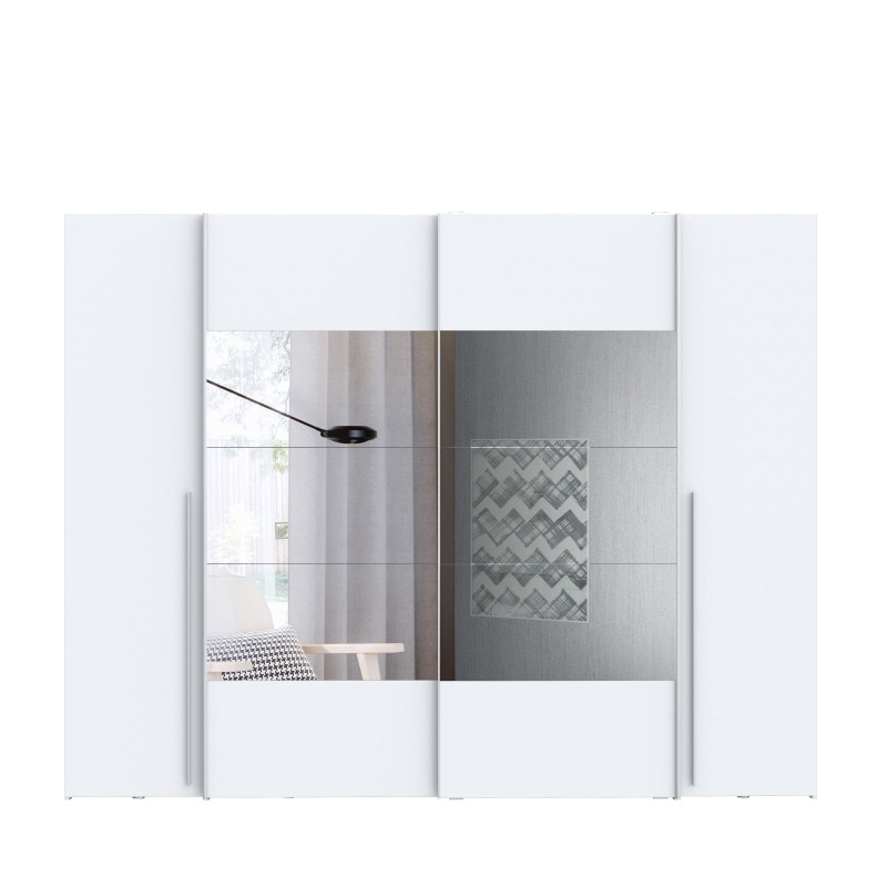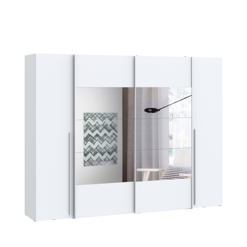 Armario modelo Rio de 2,70x2,10 correderas y batientes con Lunas de espejo en blanco