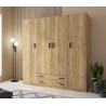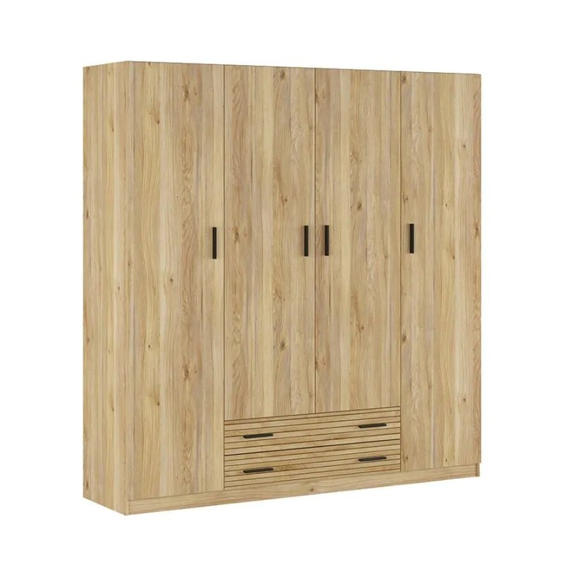 Casi 2 metros de ancho de armario en el acabado Mauvella con rayas que caracteriza la colección RAPID. Cuatro puertas abatibles, dos cajones inferiores y un interior perfectamente organizado con 2 estantes y 3 barras para colgar.