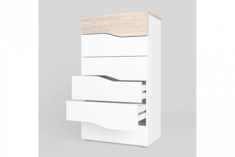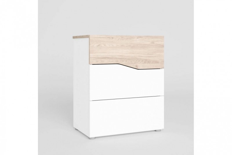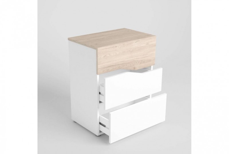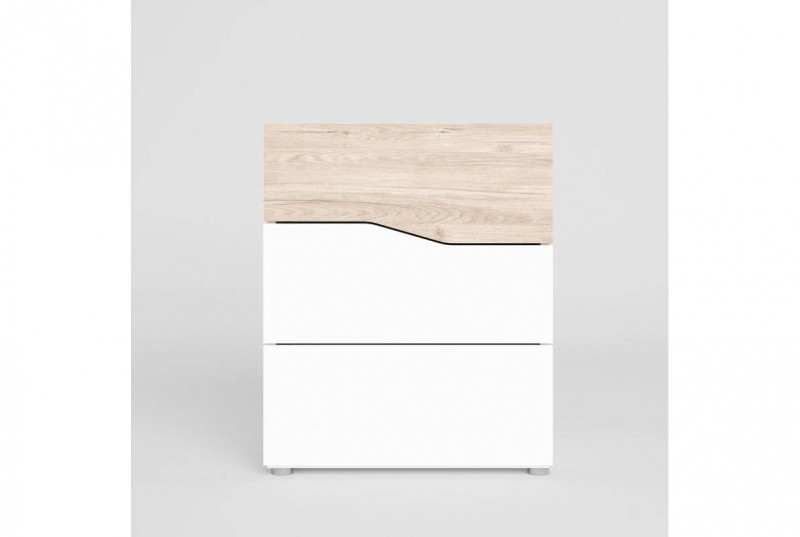 dormitorio luce con dos mesitas tres cajones y Xinfonier cannes en sahara y blanco