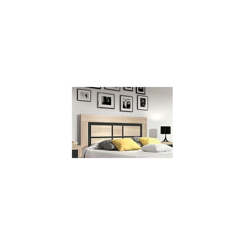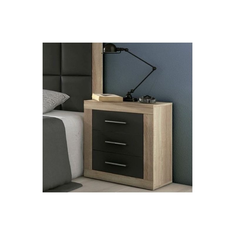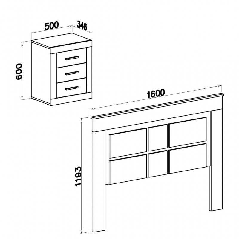 Decor Natur te trae este moderno dormitorio modelo Sara compuesto por dos mesitas con marco y tres cajones y un cabecero con plafones