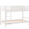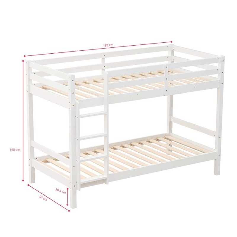La litera Olivia es una solución práctica para dormitorios infantiles y juveniles. Fabricada en pino macizo, incluye somieres de lamas y está preparada para colchones de 90x190 cm. Su acabado en blanco aporta luminosidad y ofrece la opción de montarse como dos camas independientes. Se sirve en formato kit para facilitar el transporte y el montaje.