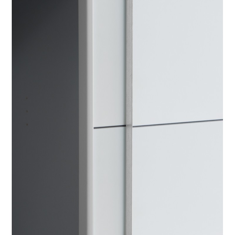 armario de puertas correderas sea ideal para tu dormitorio. Acabado en un excepcional color blanco 120 mate, En el interior está realizado en un elegante color gris y cuenta con dos barras horizontales que cruzan el