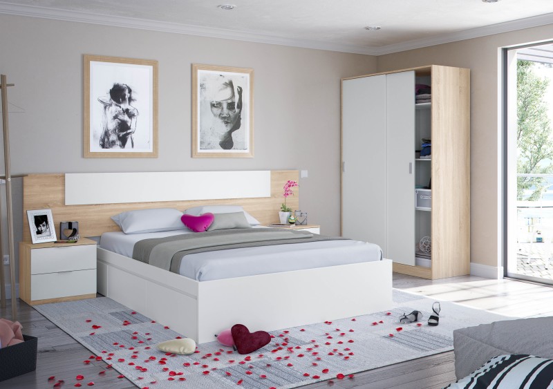 Armario Max dos puertas correderas en roble canadian/blanco artik
