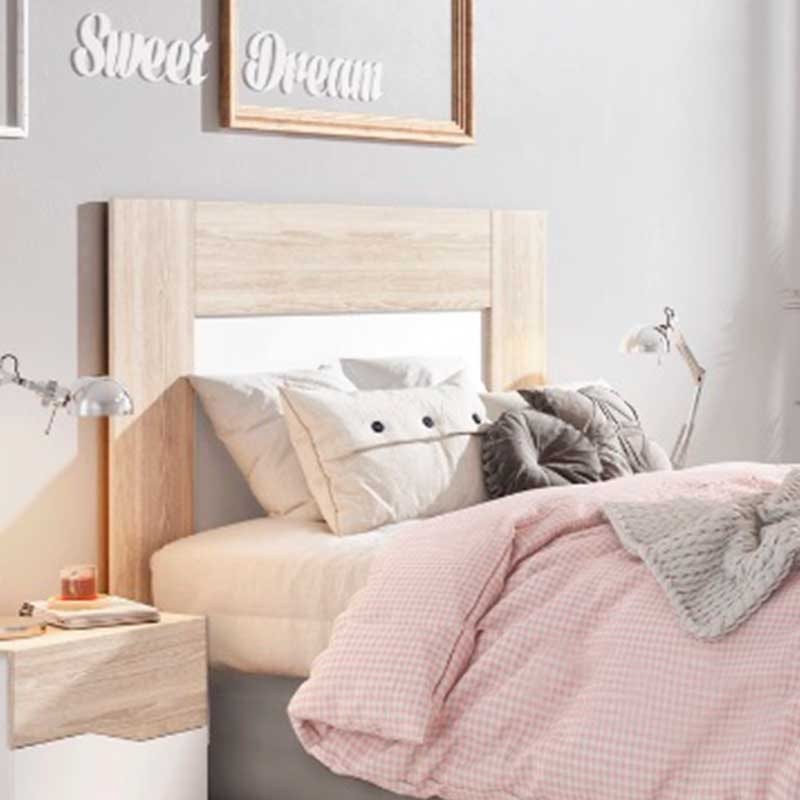 El cabecero modelo Luce es compatible con camas de 135 cm y 150 cm. Está fabricado con melamina de alta calidad y gracias a su elegante diseño y a su acabado en color blanco mate y sahara, podrás encajarlo fácilmente en cualquier dormitorio de tu hogar.