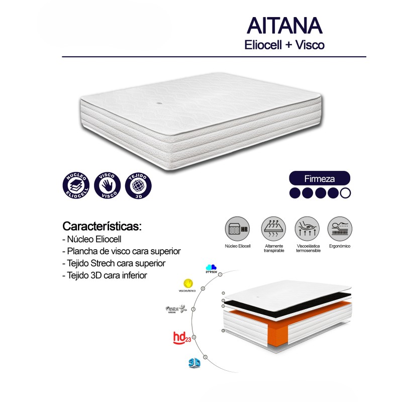 El colchón AITANA ofrece confort superior a un precio muy competitivo. Gracias a su combinación perfecta de núcleo de espumación HR, el colchón AITANA se adapta a la silueta del cuerpo proporcionando un descanso libre de presiones . Confortabilidad, Seguridad y calidad contra alérgenos.
