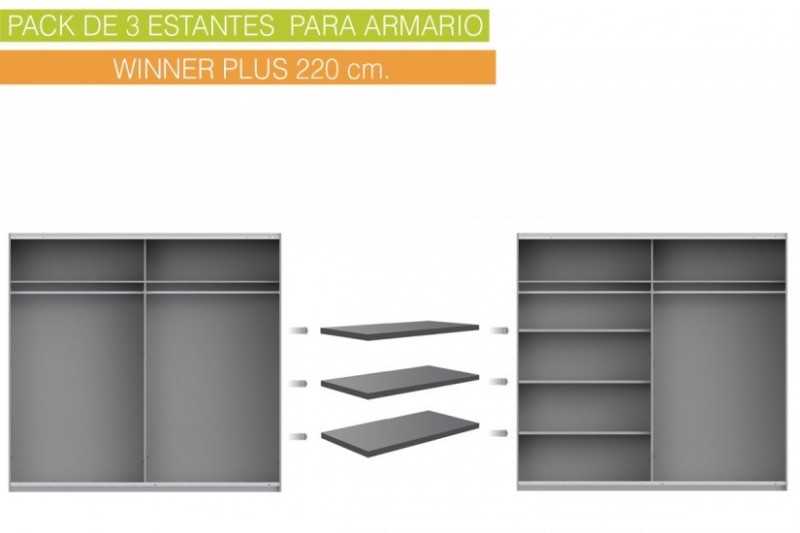 Incluye lote de 3 estantes de 107 x 42 cm válidos para los armarios WINNER Plus 270x210 Roble y/o Blanco.