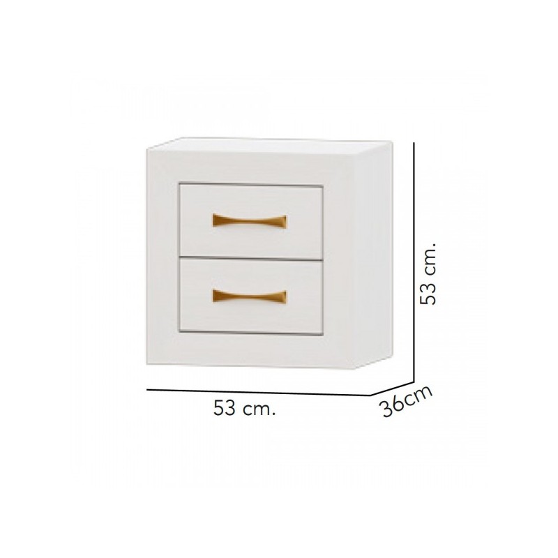 Este dormitorio tiene de color base el blanco y los tiradores y patas son blancas.
