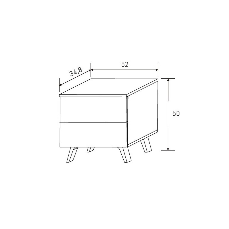 • Mesitas de noche (cada una): 50 cm de alto x 52 cm de ancho x 34,8 cm de profundidad