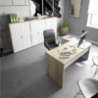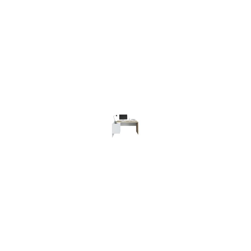Mesa despacho Style con buc tres cajones que pueden montarse a la derecha o a la izquierda. Acabado Roble canadian combinado Blanco Artik.