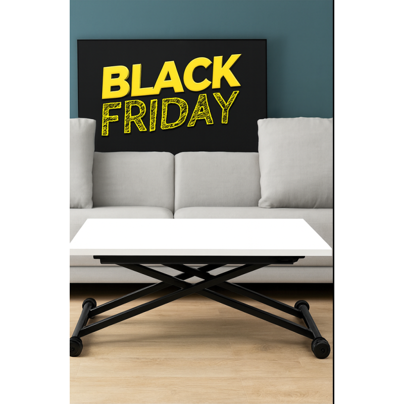Mesa centro extensible y elevable LESKEL en blanco Laca
