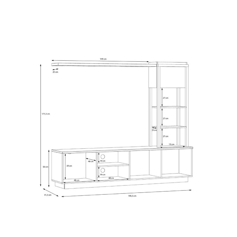 Salon con vitrina Poly Pody artisan y roble negro