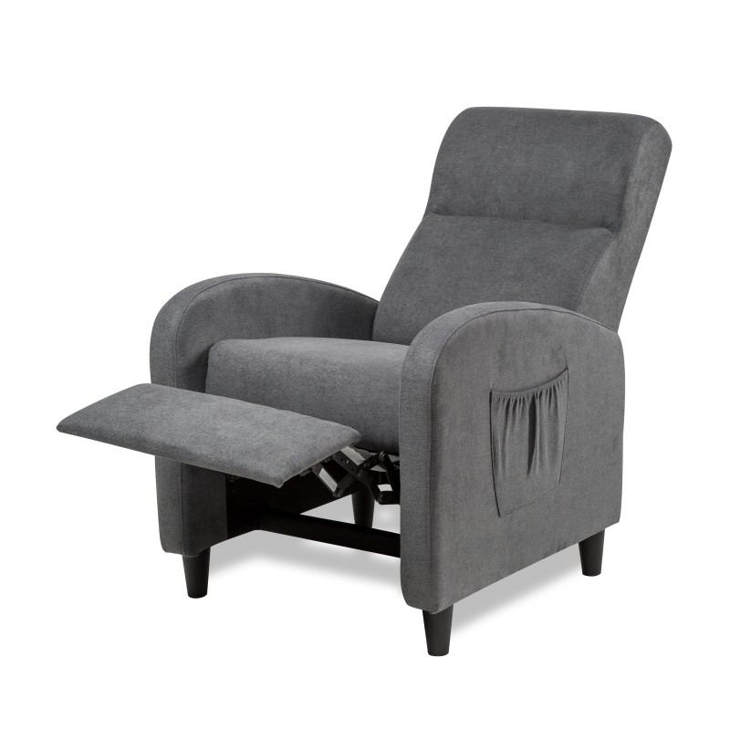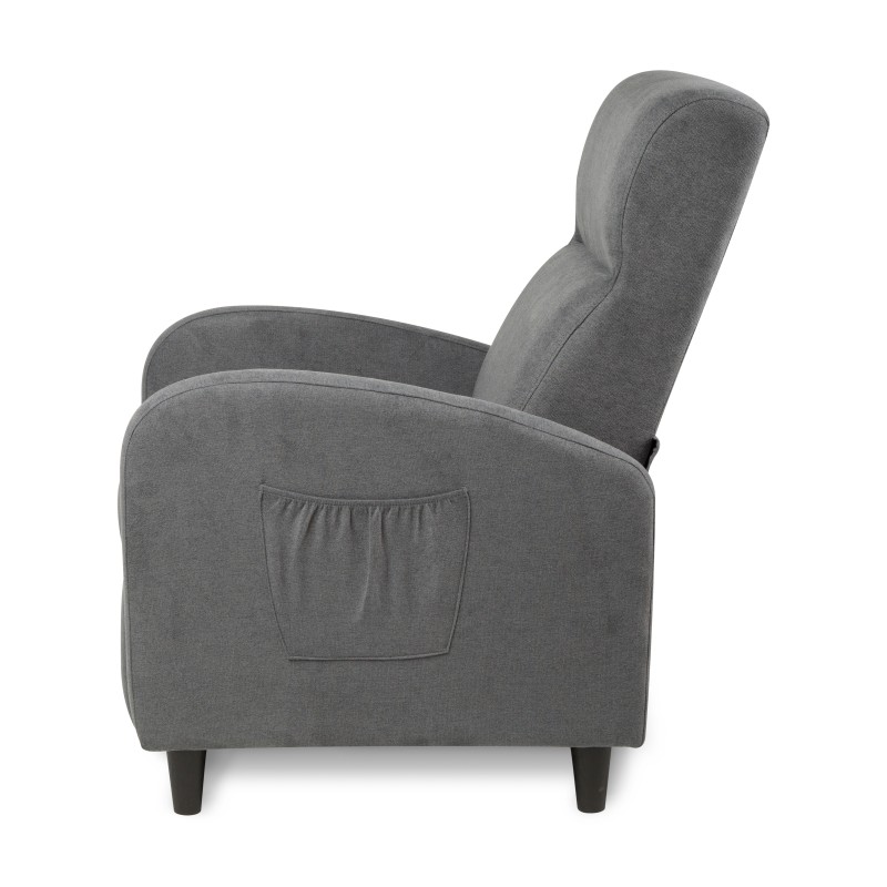 SILLON RELAX TAPIZADO EN TELA COLOR GRIS CON RELAX MANUAL.