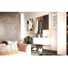El mueble del recibidor Arika consta de un módulo inferior consistente en un modulo de dos puertas con superficie útil que queda suspendido en la pared y podra almacenar grandes cosas. En la parte superior, presenta un amplio modulo con puerta de espejo  que podrás colgar también en la pared.