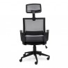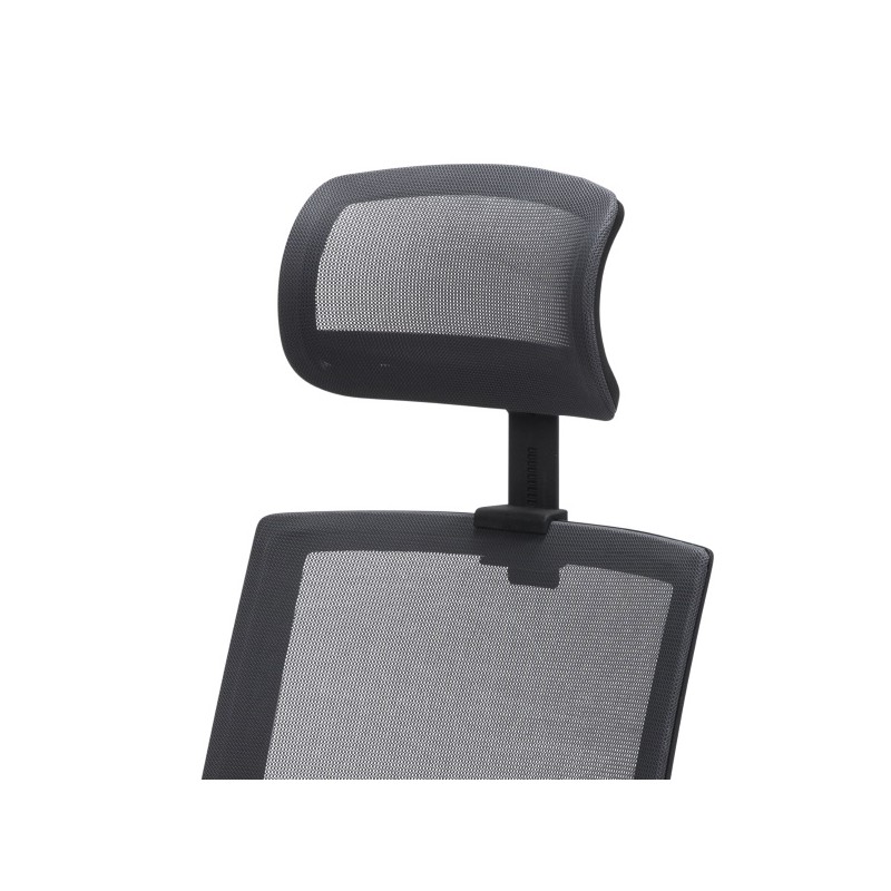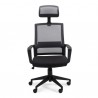 Silla de oficina con respaldo ergonómico y reposacabezas regulable, tapizada en tela negra en el asiento y tejido 3D gris en el resto.  Dispone de refuerzo lumbar, patas de polipropileno negro, mecanismo hidráulico elevador, sistema de balanceo y brazos desmontables.  Medidas 59*60*110-120 cm.