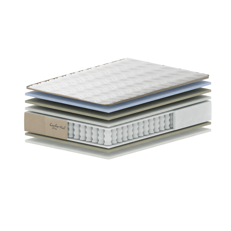 Colchón de gama media. Colchón de muelles ensacados cuya acogida y firmeza permiten que se adapte perfectamente al cuerpo.