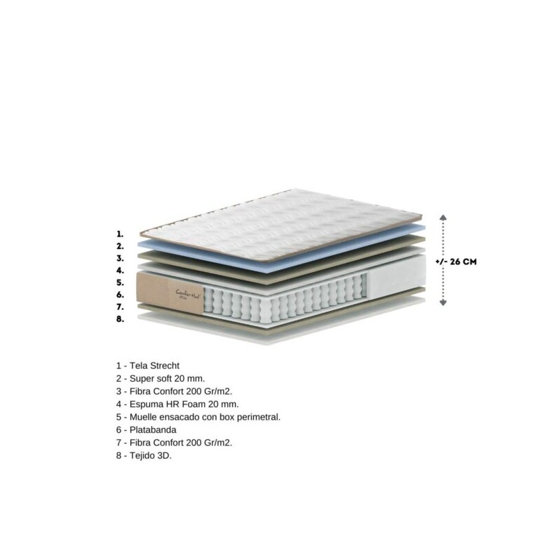 3. Fibra Confort 200 Gr/m2. – Fibra de poliéster para reducir la presión al dormir. Gran confort y acogida.