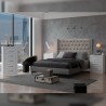 Cabecero tapizado orejero y dos mesitas de tres cajones niza 8