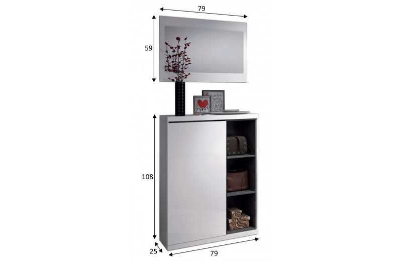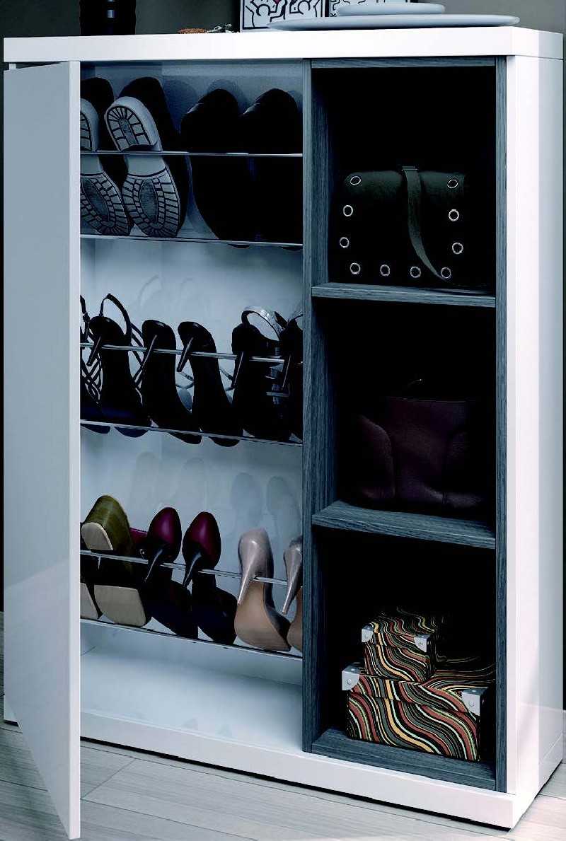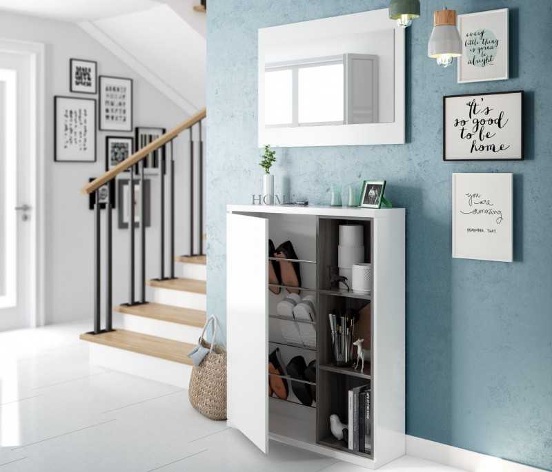 Recibidor zapatero lux, blanco brillo/gris ceniza