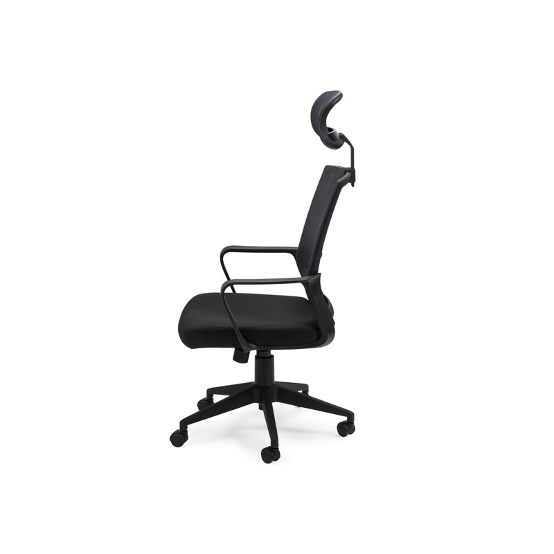 La silla de oficina JASMINE está tapizada en tejido 3D de color negro.