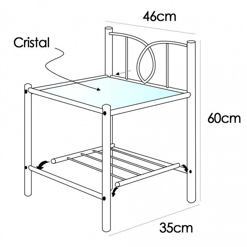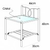 Económica mesita de noche de forja de 60 cm de altura de color negro y cristal transparente.