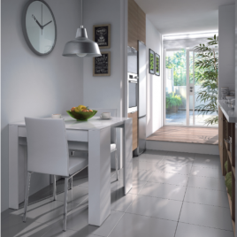 Mesa comedor-consola multifuncion Allongo-Kendra extensible en blanco brillo