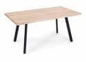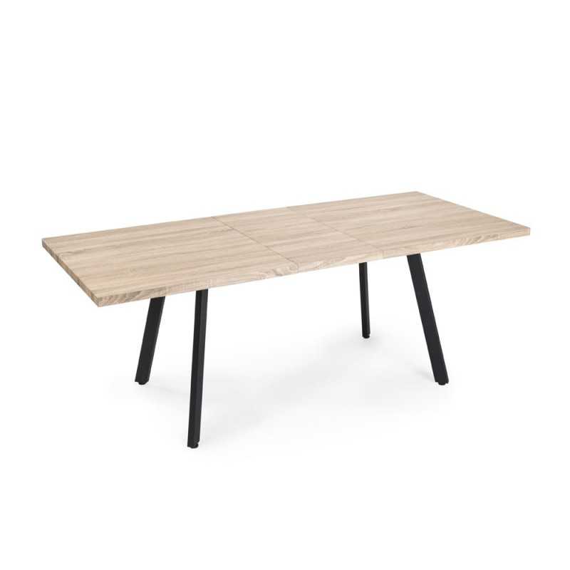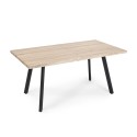 Mesa de comedor fija con tapa de madera color roble sonoma y patas metalicas en negro de 140x80x76.