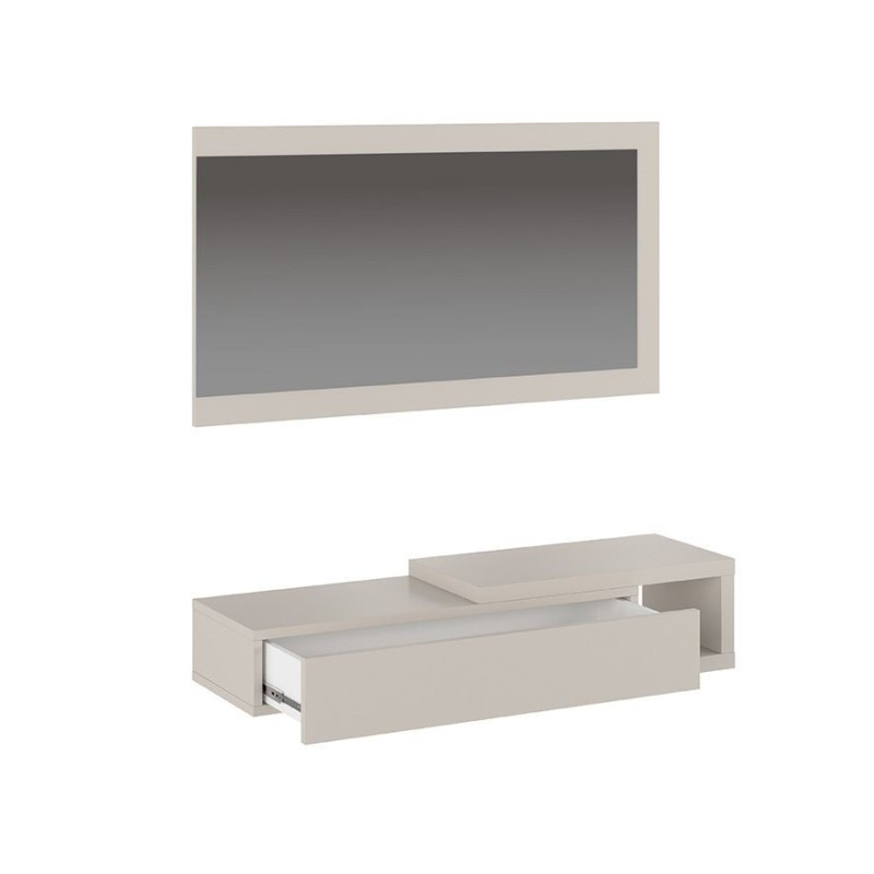 El Recibidor Aura es la combinación perfecta de estilo y practicidad, diseñado para optimizar la entrada de tu hogar. Fabricado con melamina de alta calidad en un elegante color beig, este mueble añade un toque minimalista y sofisticado a cualquier decoración.
